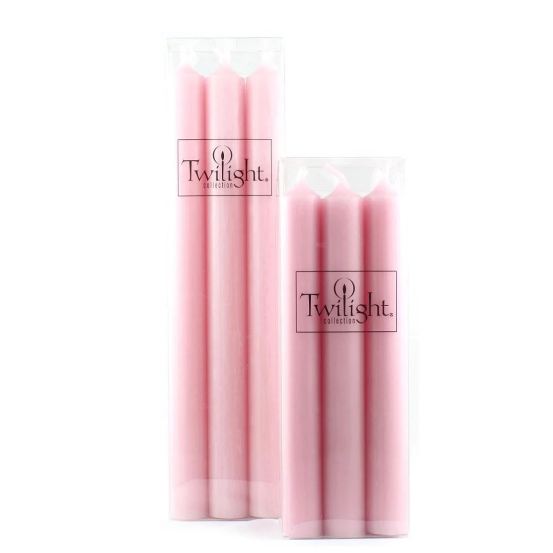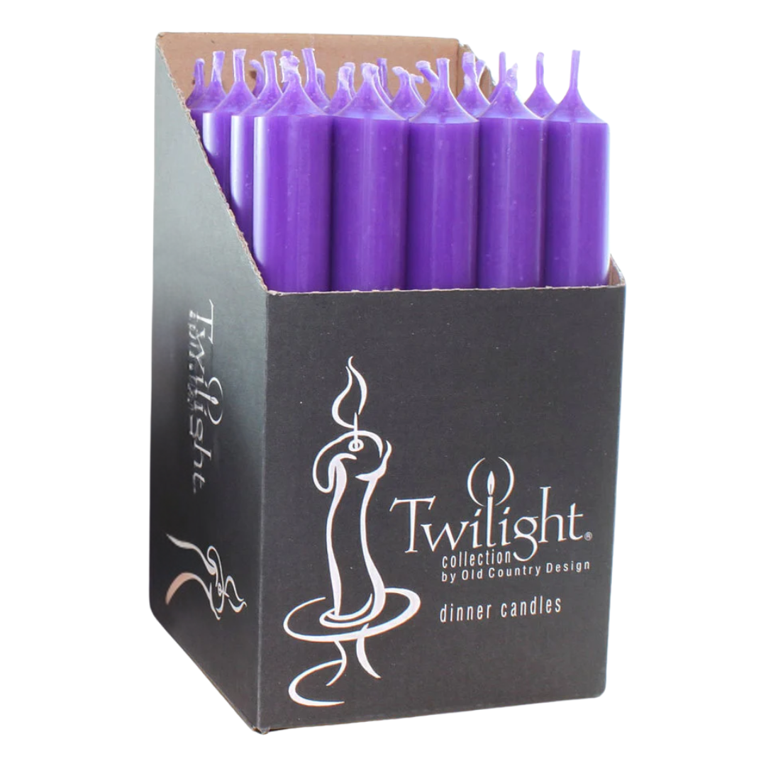 Twilight Collection 10" solid coloured, fragrance free dinner candles. Burn approximately 1" per hour, smokeless and dripless. Made in Germany, these candles are drawn in the traditional European method using only the highest quality RAL-certified paraffin available and 100% lead-free cotton wicks.